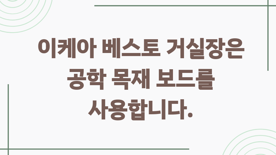 이케아 베스토 거실장은 공학 목재 보드를 사용합니다. 가볍고 안정적이며 튼튼한 공학 목재 보드는 다양한 가구 제작에 사용되지만, 내구성에 대한 우려도 존재합니다. 일부 사용자 리뷰에서 제품 하자나 조립 과정에서의 어려움을 언급한 것처럼, 꼼꼼한 검수와 조립이 필요합니다.