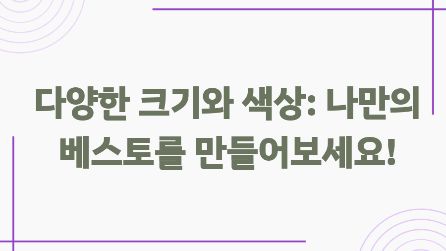 다양한 크기와 색상: 나만의 베스토를 만들어보세요!