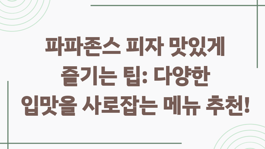 파파존스 피자 맛있게 즐기는 팁: 다양한 입맛을 사로잡는 메뉴 추천!