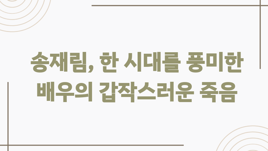 송재림, 한 시대를 풍미한 배우의 갑작스러운 죽음