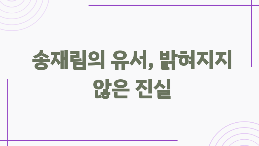 송재림이 남긴 유서의 내용은 공개되지 않았지만, 그가 팬들과 가족들에게 마지막 인사를 남겼다는 사실만 알려져 있습니다. 유서의 구체적인 내용이 공개되지 않은 점은 많은 사람들의 궁금증을 증폭시키고 있습니다. 유서에 담긴 내용이 그의 죽음의 원인에 대한 실마리를 제공할 수도 있기 때문입니다. 과거 인터뷰에서 송재림은 자신의 장례식을 축제처럼 만들고 싶다는 뜻을 밝혔던 것으로 알려져 더욱 안타까움을 자아냅니다.