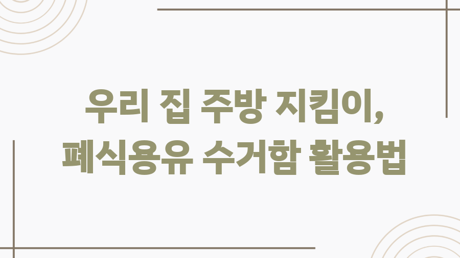 우리 집 주방 지킴이, 폐식용유 수거함 활용법