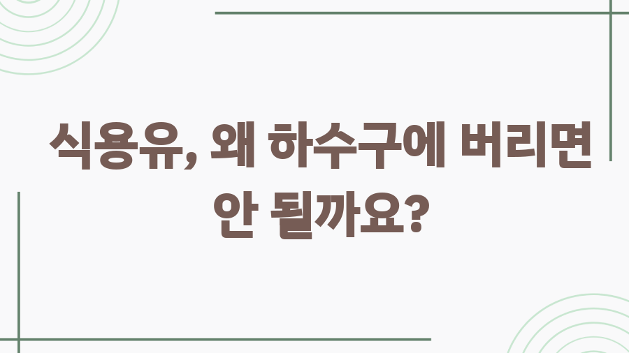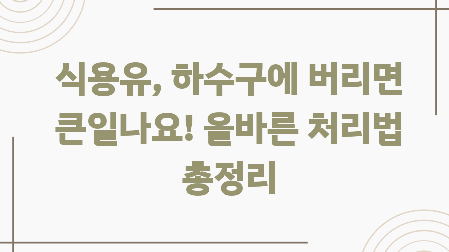 무심코 싱크대에 콸콸 쏟아버리셨나요? 잠깐! 식용유를 잘못 버리면 환경 오염은 물론, 우리 집 배수관까지 망가뜨릴 수 있다는 사실, 알고 계셨나요? 오늘은 환경도 지키고 우리 집도 보호하는 현명한 식용유 버리는 법에 대해 낱낱이 파헤쳐 보겠습니다. 지금부터 저와 함께 똑똑하게 식용유 처리하는 방법을 알아보시죠!