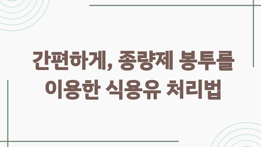 폐식용유 수거함을 찾기 어렵거나, 소량의 식용유를 처리해야 할 때는 종량제 봉투를 활용할 수 있습니다.