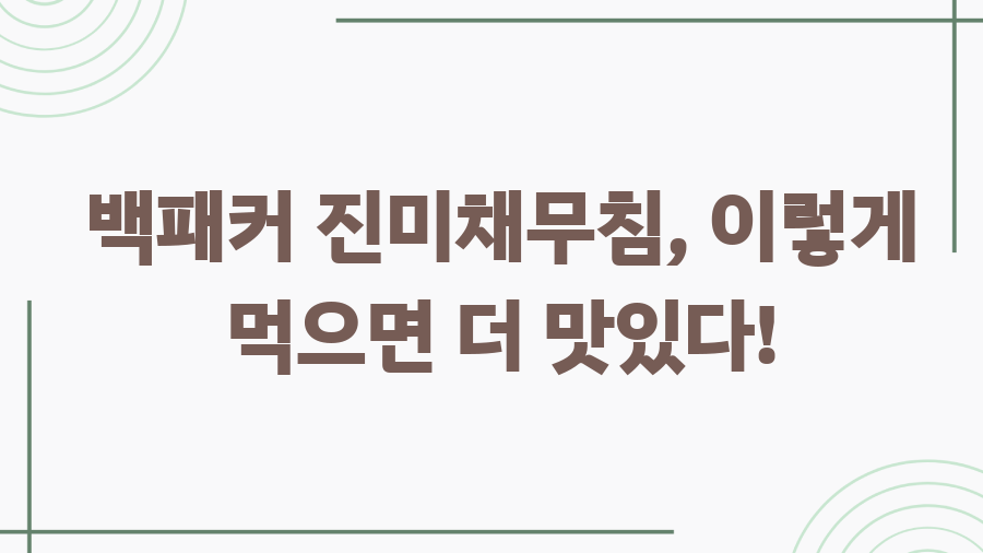 오늘 알아본 백패커 백종원 진미채무침 레시피, 어떠셨나요?