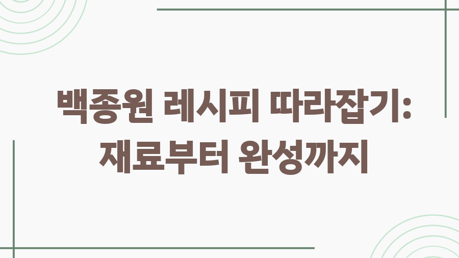 백종원 레시피 따라잡기: 재료부터 완성까지