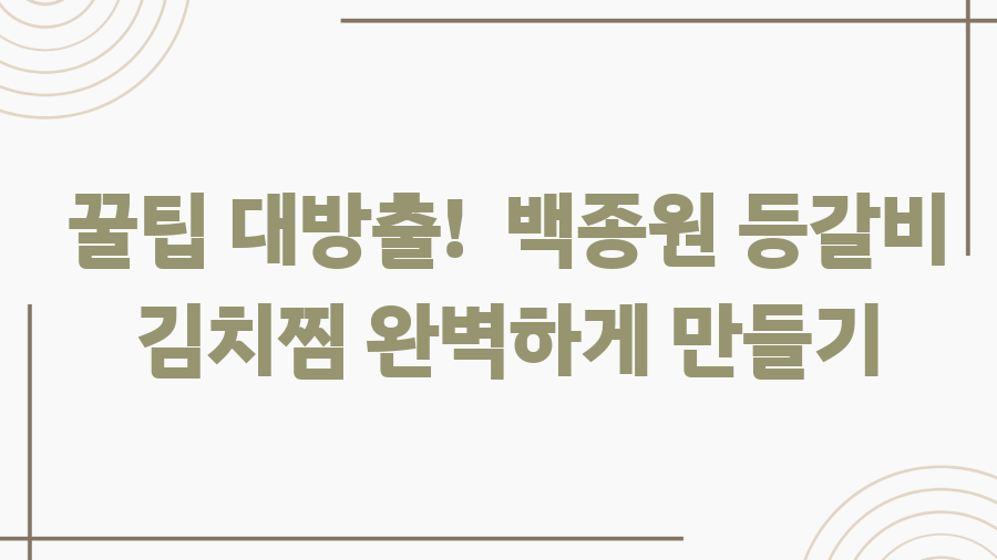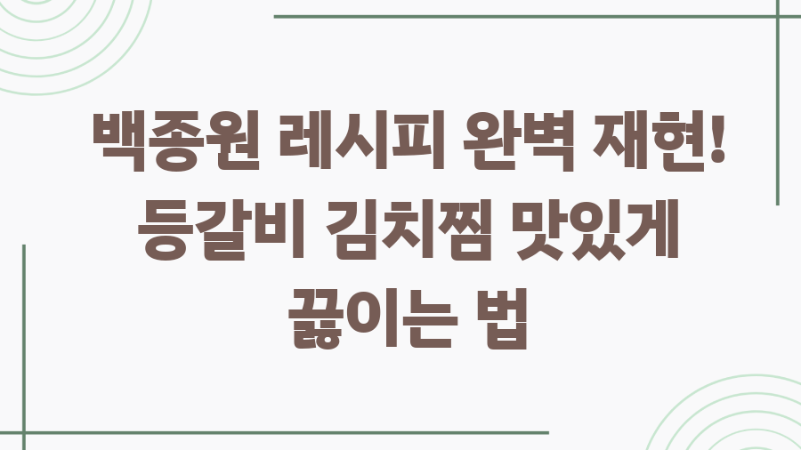 오늘은 백종원 등갈비 김치찜 레시피를 자세히 알아보았습니다. 재료 손질부터 양념 비율, 그리고 꿀팁까지, 집에서도 쉽고 맛있게 만들 수 있는 방법들을 소개해 드렸는데요.
