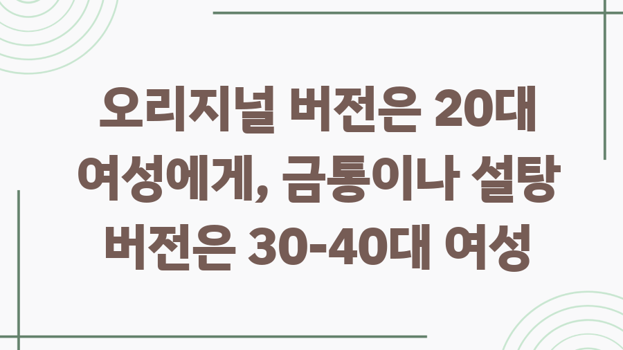 오리지널 버전은 20대 여성에게, 금통이나 설탕 버전은 30-40대 여성에게 추천하는 의견도 있습니다.