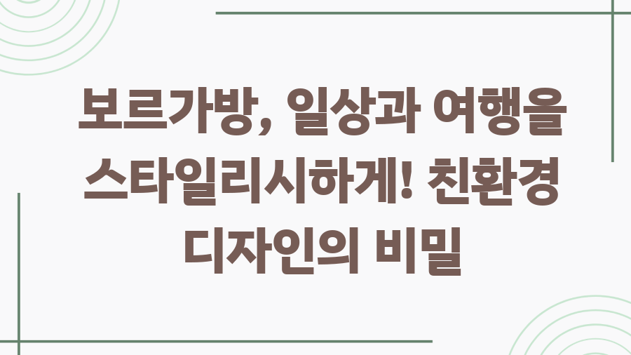 오늘은 여러분의 일상과 여행을 더욱 풍요롭게 만들어줄 보르가방에 대해 알아보겠습니다.