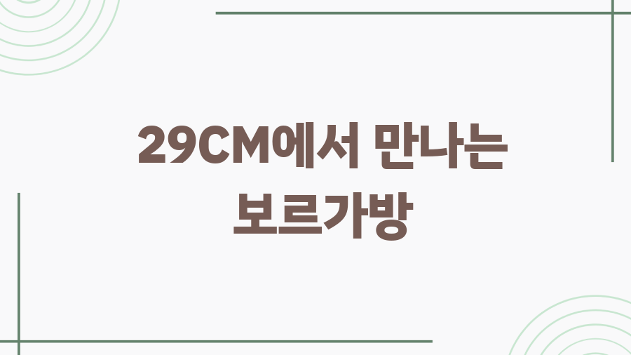 보르가방은 다양한 온라인 플랫폼에서 만나볼 수 있지만, 특히 29CM에서는 보르의 다양한 제품 라인업을 한눈에 확인할 수 있습니다.