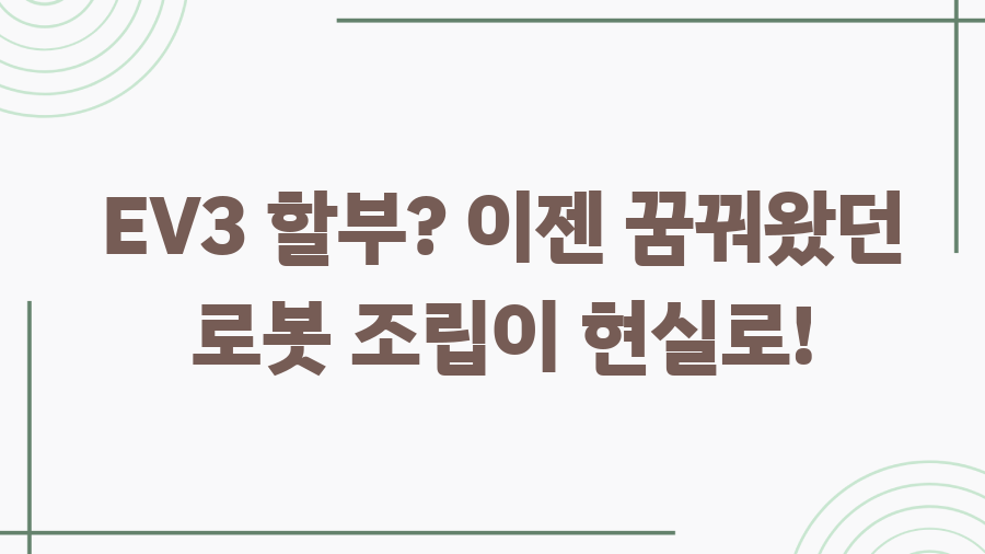 레고 EV3 로봇을 갖고 싶은데, 가격이 부담스러우신가요? 통장 잔고를 확인하며 한숨 쉬고 계신 여러분들을 위해 준비했습니다! 꿈꿔왔던 EV3 로봇을 할부로 구매하는 방법, 그리고 그 과정에서 알아두면 유용한 정보들을 꼼꼼하게 정리해 드릴게요.