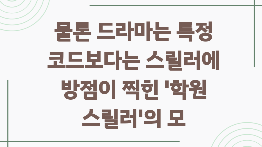 특히, 수능 출제위원이었던 슬기 아버지의 의문사와 얽힌 숨겨진 진실을 파헤치는 과정은 극의 긴장감을 높이며, 단순한 학원물의 틀을 벗어나 미스터리 스릴러로서의 매력을 더합니다.
