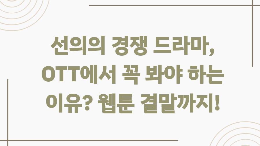드라마 "선의의 경쟁"은 송채윤, 심재영 작가의 동명 웹툰을 원작으로 합니다. 웹툰은 이미 많은 팬을 확보하고 있으며, 드라마는 웹툰의 핵심 요소들을 잘 살리면서도 TV 드라마에 맞게 각색되었습니다.