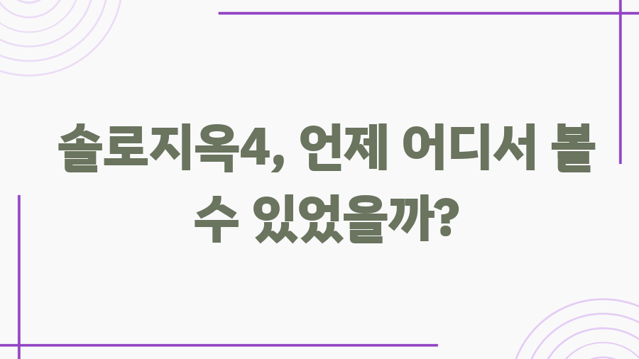 솔로지옥4, 언제 어디서 볼 수 있었을까?