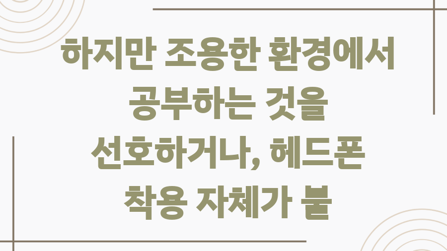 하지만 조용한 환경에서 공부하는 것을 선호하거나, 헤드폰 착용 자체가 불편하게 느껴진다면 굳이 헤드폰을 고집할 필요는 없습니다.