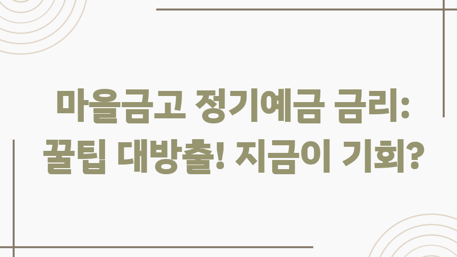 꿀팁 대방출! 마을금고 정기예금 금리, 똑똑하게 활용하는 방법