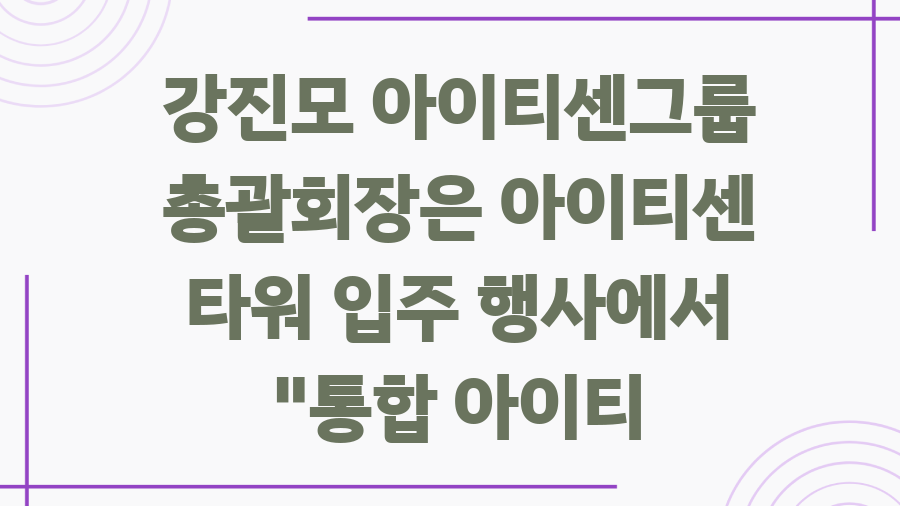 강진모 아이티센그룹 총괄회장은 아이티센 타워 입주 행사에서 "통합 아이티센은 과거 아이티센보다 더 강력한 힘을 내며 IT 산업을