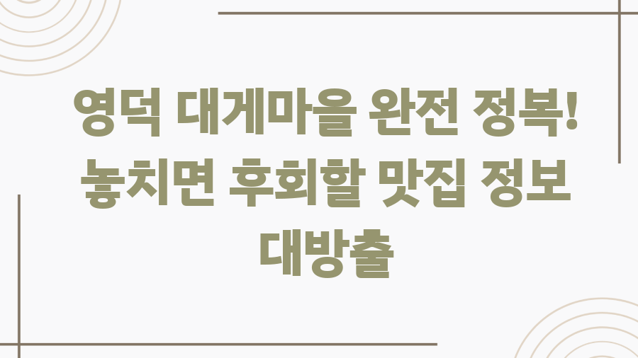오늘은 영덕 대게마을의 매력에 푹 빠져보는 시간을 가져볼까 합니다.
