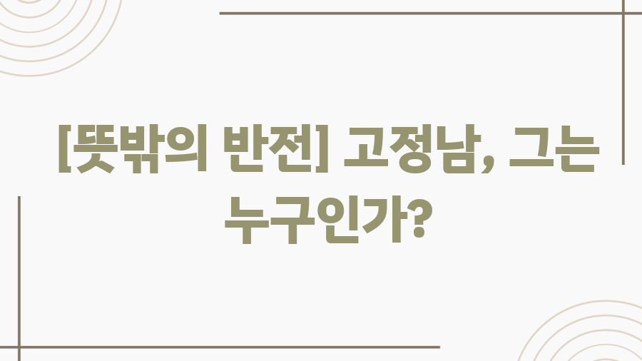 [뜻밖의 반전] 고정남, 그는 누구인가?