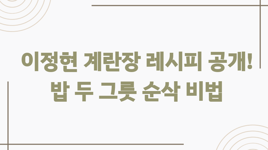 🤤 오늘은 누구나 쉽게 만들 수 있는 이정현 계란장 레시피를 파헤쳐 보고, 저만의 꿀팁까지 더해 여러분의 식탁을 더욱 풍성하게 만들어 드릴게요!