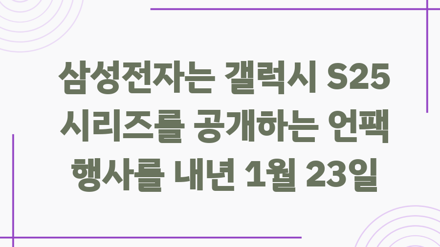 삼성전자는 갤럭시 S25 시리즈를 공개하는 언팩 행사를 내년 1월 23일 미국 샌프란시스코에서 개최할 것으로 알려졌습니다. 이날 행사에서 더 얇은 두께를 강조하는 '갤럭시 S25 슬림'도 함께 공개될지 관심이 모아지고 있습니다.