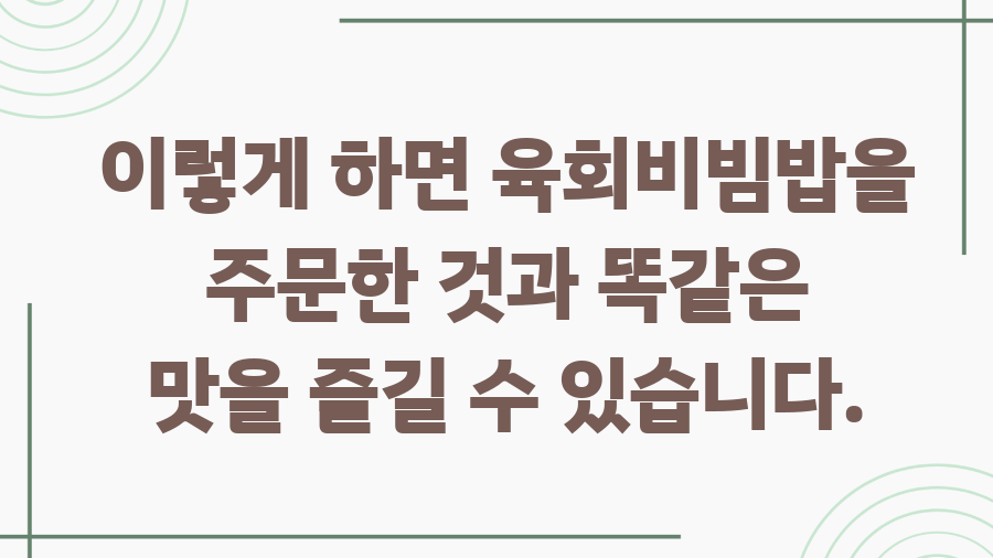 이렇게 하면 육회비빔밥을 주문한 것과 똑같은 맛을 즐길 수 있습니다.