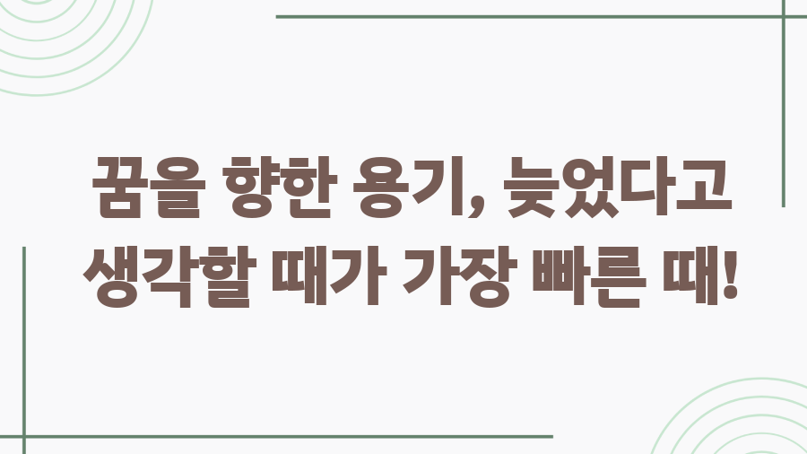 꿈을 향한 용기, 늦었다고 생각할 때가 가장 빠른 때!