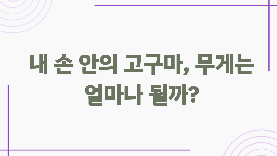 고구마 무게, 생각보다 꽤나 다양하다는 사실! 마트에서 파는 일반적인 크기의 고구마는 대략 100g 정도 나간다고 해요. 하지만 미니 밤고구마처럼 작은 사이즈는 40g에서 60g 정도, 큼지막한 꿀고구마는 150g에서 200g까지 나갈 수도 있답니다. 심지어 400g이 넘는 슈퍼 사이즈 고구마도 있다는 사실!