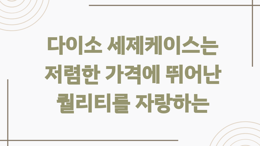 오늘 알아본 다이소 세제케이스, 정말 놀랍지 않나요? 저렴한 가격에 다양한 활용도를 자랑하는 이 녀석, 당장 다이소로 달려가 득템해야 할 이유가 충분하겠죠?