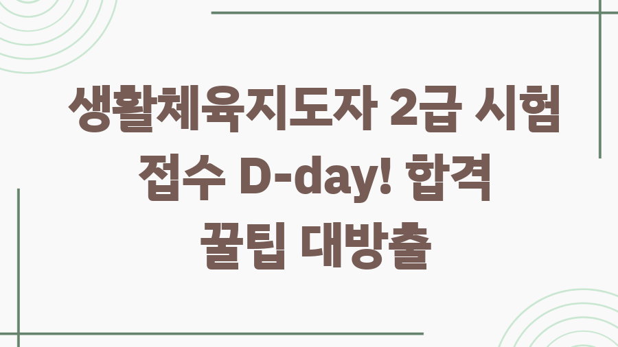 2급 생활체육지도자 시험 접수가 드디어 시작되었습니다! 🏃♀️🏃♂️ 국민체육진흥공단에서 주관하는 이 시험은 스포츠를 통해 사람들의 삶에 긍정적인 영향을 미치고 싶은 분들에게 아주 좋은 기회인데요.