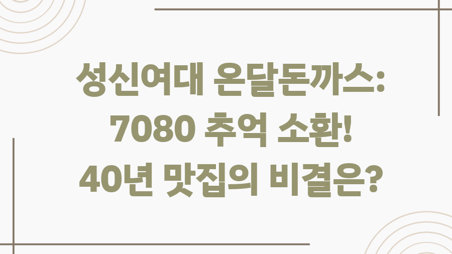 오늘 여러분을 추억 소환시키는 마성의 돈까스 맛집, 성신여대 "온달돈까스"로 안내합니다! 1978년부터 지금까지, 변함없는 맛과 푸짐한 인심으로 성신여대 학생들의 배를 든든하게 채워주는 곳이죠.