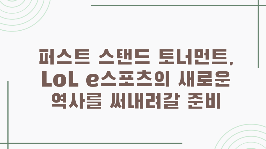 바로 퍼스트 스탠드 토너먼트입니다! 롤 e스포츠의 새로운 지평을 열 이 대회가 과연 어떤 흥미진진한 이야기들을 담고 있을지, 함께 파헤쳐 볼까요? 3월, 서울에서 펼쳐질 뜨거운 승부에 여러분의 시선을 고정하세요!