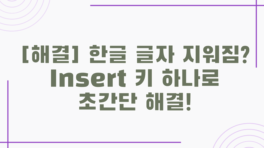 | 한글 글자 지워짐 | 수정 모드 활성화 | Insert 키 누르기, 상태 표시줄 클릭, 삽입 잠금 설정 |