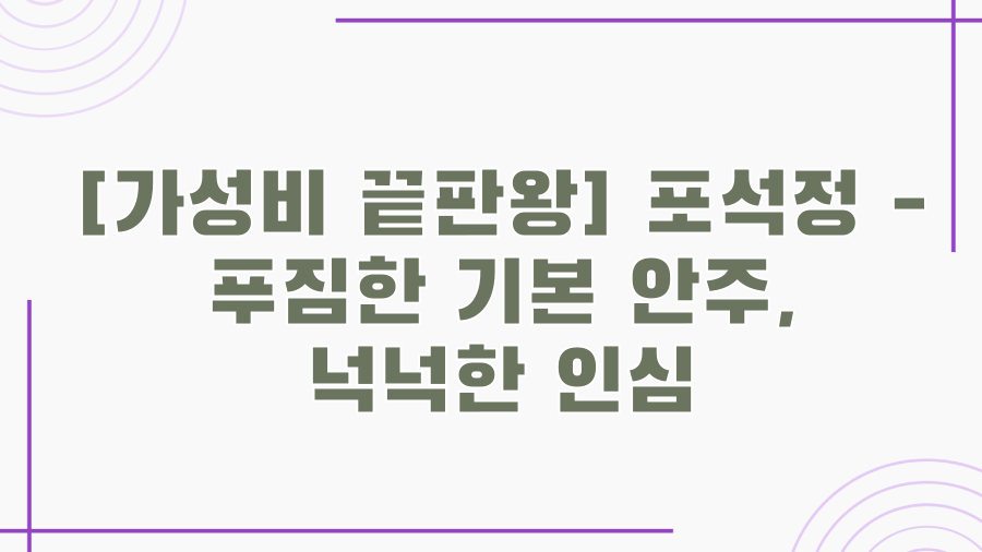 [가성비 끝판왕] 포석정 - 푸짐한 기본 안주, 넉넉한 인심