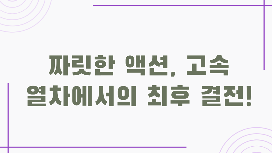 고속 열차 위에서 펼쳐지는 액션 장면은 영화의 클라이맥스를 장식하며, 관객들에게 짜릿한 쾌감을 선사합니다.