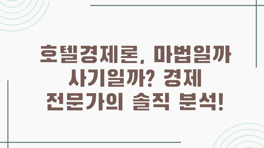 여러분, 혹시 "호텔경제론"에 대해 들어보셨나요?