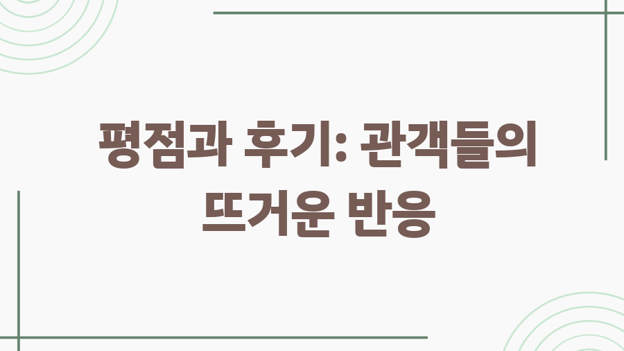 개봉 후 쏟아지는 관객들의 후기는 영화에 대한 다양한 반응을 보여줍니다. 감동적이었다는 긍정적인 평가와 함께, 아쉬운 점을 지적하는 비판적인 의견도 있습니다. 하지만, 대부분의 관객들은 배우들의 열연과 영화의 웅장한 스케일에 찬사를 보내고 있습니다. 다양한 관점의 후기들을 참고하여 나만의 영화 감상을 만들어보세요.