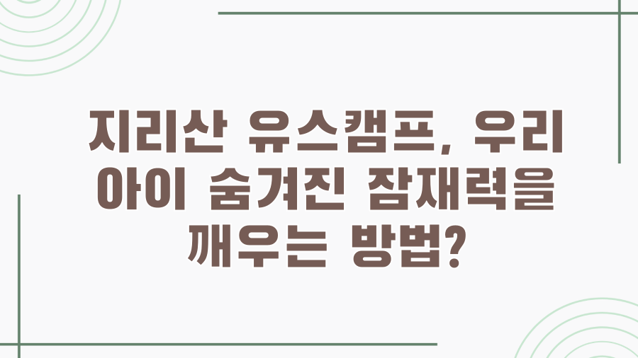 이번 여름, 지리산 유스캠프에서 아이들에게 특별한 추억을 선물해 주세요! 🎁