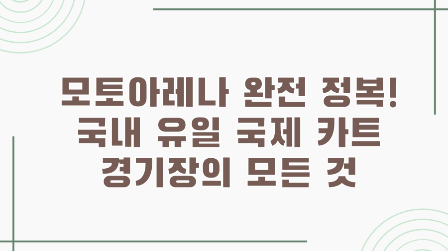 - 국제 공인 서킷: 국내 유일의 FIA, CIK-FIA 공식 인증을 받은 국제 규격의 서킷입니다.