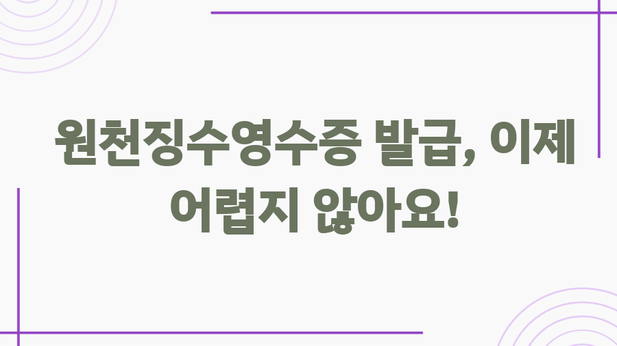 요즘 세금 관련 서류 준비 때문에 골치 아픈 분들 많으시죠? 특히 원천징수영수증은 종합소득세 신고는 물론이고, 각종 금융기관이나 기타 기관에 제출해야 할 때도 꼭 필요한 중요한 서류인데, 어떻게 발급받는지 막막하다는 분들이 많더라고요.