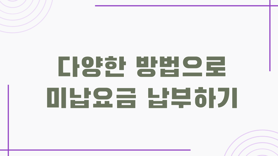 미납요금을 확인했다면, 이제 간편하게 납부하는 일만 남았습니다! 온라인부터 오프라인까지, 다양한 납부 방법이 준비되어 있으니, 자신에게 맞는 방법을 선택해 보세요.
