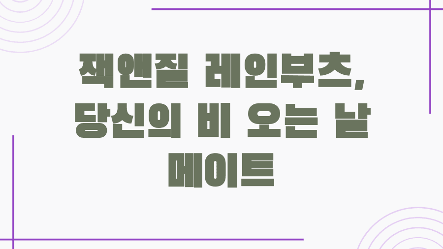 오늘 우리는 잭앤질 레인부츠의 다양한 종류와 각 부츠가 가진 매력, 그리고 나에게 꼭 맞는 사이즈를 고르는 방법부터 센스 넘치는 코디법까지 함께 알아보았습니다.