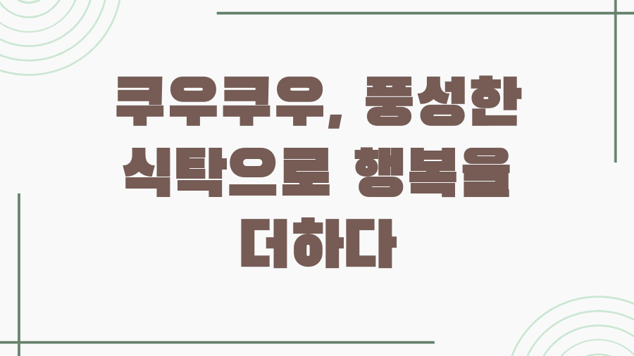 오늘 우리는 쿠우쿠우라는 매력적인 뷔페 브랜드에 대한 다채로운 민생 정보를 함께 알아보았습니다. 합리적인 가격부터 푸짐하고 신선한 메뉴 구성, 그리고 놓치면 후회할 할인 정보까지, 쿠우쿠우를 더욱 알차게 즐길 수 있는 다양한 팁들을 살펴보았는데요. 이제 쿠우쿠우 방문 계획을 세우실 때, 오늘 알아본 정보들이 든든한 길잡이가 되어줄 것이라 생각합니다. 가족과의 소중한 추억을 만들거나, 친구들과 즐거운 시간을 보내고 싶을 때, 쿠우쿠우의 풍성한 식탁이 여러분의 행복을 더해주기를 바랍니다.