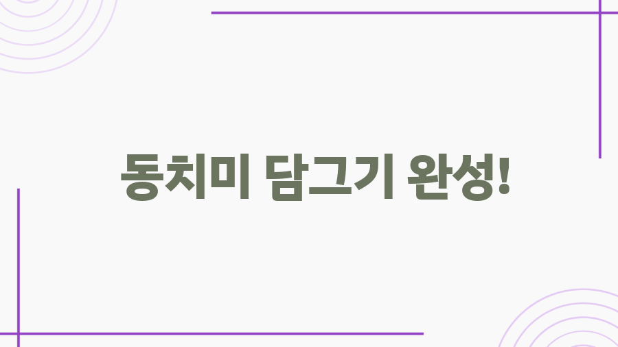 오늘 여러분과 함께 통무 동치미 담그는 법을 알아보았습니다. 레시피대로 따라 하면 누구든 쉽고 맛있게 동치미를 담글 수 있습니다. 하지만 무의 종류나 숙성 환경에 따라 맛이 조금씩 다를 수 있으니, 여러 번 시도하며 자신만의 레시피를 만들어 보세요!