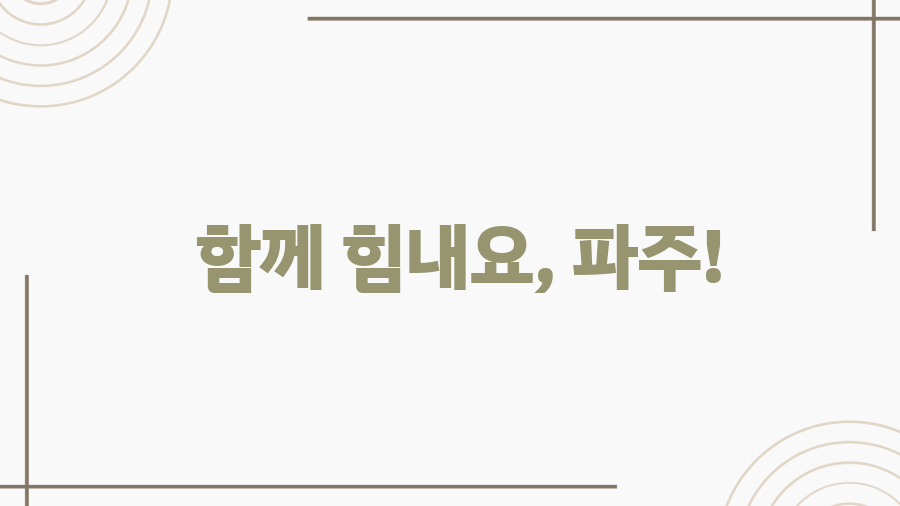 오늘 알아본 내용 어떠셨나요? 10만원의 민생회복 지원금 신청 방법과 유의사항을 꼼꼼히 확인하셨길 바랍니다. 이 글이 여러분의 알뜰살림과 파주시 지역경제 활성화에 도움이 되셨으면 좋겠네요! 더 자세한 정보는 파주시청 홈페이지 또는 파주시 블로그를 참고해주세요. 다른 유용한 정보들도 많으니, 블로그 구독과 다른 게시글 방문도 부탁드립니다. 여러분의 적극적인 참여가 파주시의 발전에 큰 힘이 됩니다.