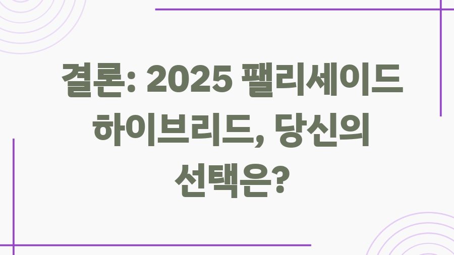 결론: 2025 팰리세이드 하이브리드, 당신의 선택은?