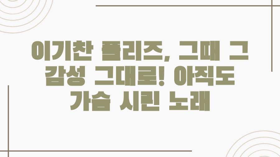 2000년대 초반, 감미로운 목소리로 많은 사랑을 받았던 가수 이기찬을 기억하시나요? 그의 수많은 히트곡 중에서도 특히 '플리즈'라는 곡은 많은 사람들의 플레이리스트에 자리 잡으며 큰 사랑을 받았습니다. 혹시 이기찬의 '플리즈'에 담긴 진솔한 이야기와 멜로디가 그리우신가요? 아니면 최근 이기찬의 근황을 접하고 그의 음악 세계에 다시 한번 빠져들고 싶으신가요?이번 포스팅에서는 많은 이들의 추억을 자극하는 이기찬의 '플리즈'에 대한 모든 것을 파헤쳐 보겠습니다. 곡의 탄생 비화부터 애절한 가사, 그리고 아직까지도 많은 사랑을 받고 있는 뮤직비디오와 음원 정보까지, 여러분이 궁금해하실 모든 내용을 꼼꼼하게 정리하여 알려드릴게요. 이기찬의 음악 세계로 다시 한번 떠나는 여정에 함께하실 준비가 되셨다면, 지금부터..