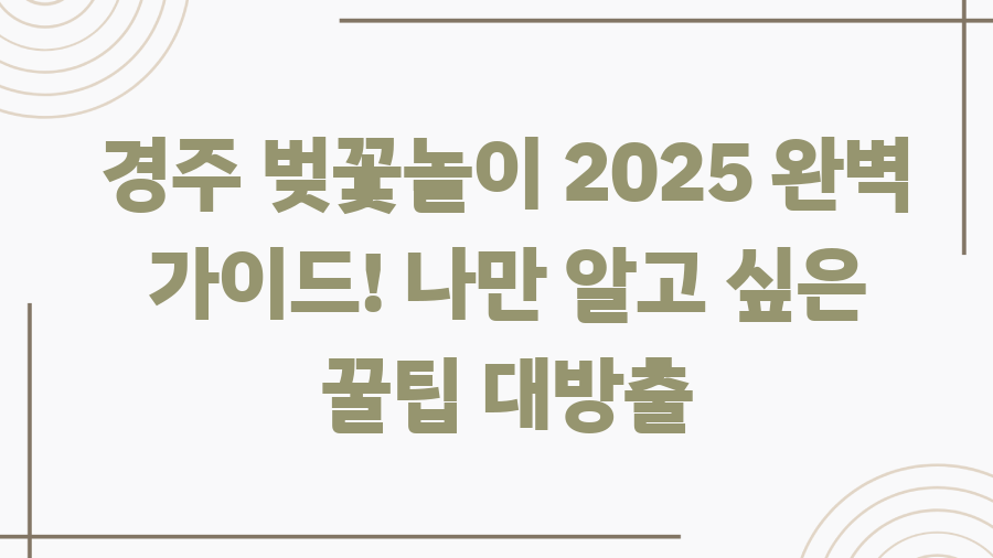 경주에서 벚꽃놀이를 제대로 즐기고 싶으신가요? 흩날리는 벚꽃 아래 낭만적인 추억을 만들 계획이신가요? 그렇다면 2025년 경주 벚꽃 시즌을 완벽하게 준비하기 위한 정보를 지금부터 꼼꼼하게 알려드릴게요! 경주 벚꽃 명소, 어디가 좋을까?경주는 역사적인 유적지와 아름다운 자연경관이 어우러져 벚꽃놀이의 최적의 장소로 손꼽힙니다. 하지만 워낙 유명한 곳이다 보니, 어디를 가야 제대로 벚꽃을 만끽할 수 있을지 고민이 될 수밖에 없죠. 지금부터 경주에서 벚꽃을 가장 아름답게 즐길 수 있는 숨겨진 명소들을 소개해 드릴게요. 벚꽃 명소들을 미리 알아보고, 나만의 벚꽃놀이 코스를 계획해 보세요! 벚꽃 개화 시기, 언제 떠나야 할까?벚꽃놀이에서 가장 중요한 것은 바로 개화 시기를 정확히 파악하는 것입니다. 벚꽃은 짧은 시..