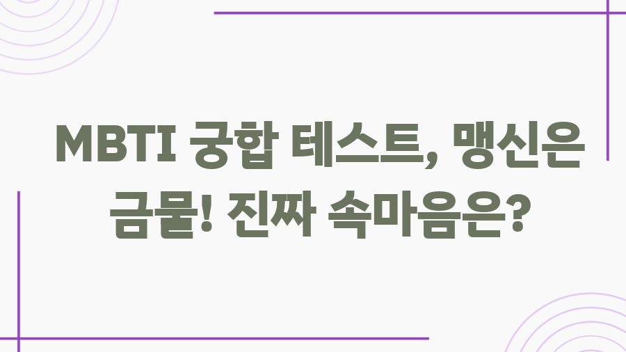 MBTI 궁합 테스트, 정말 과학적일까요? 재미로 보는 심리 분석! 혹시 "혈액형별 성격"이나 "별자리 운세"를맹신하시나요?MBTI 궁합 테스트도 비슷할 수 있습니다. 하지만 재미로 즐기기에는 이만한 게 없죠! MBTI(Myers-Briggs Type Indicator)는 개인의성격 유형을 16가지로 분류하여, 서로 다른 유형 간의관계를 예측하는 도구입니다.연애, 친구, 가족, 직장 동료 등 다양한 관계에서흥미로운 결과를 얻을 수 있는데요.오늘은 MBTI 궁합 테스트의 세계로 함께 떠나볼까요? MBTI 궁합 테스트, 어디서 해볼 수 있을까요?다양한 웹사이트에서 MBTI 궁합 테스트를 제공하고있습니다.간단하게 몇 군데를 소개해 드릴게요. 케이테스트: 이곳에서는 나의 MBTI와상대방의 MBTI를 선택하여 연..